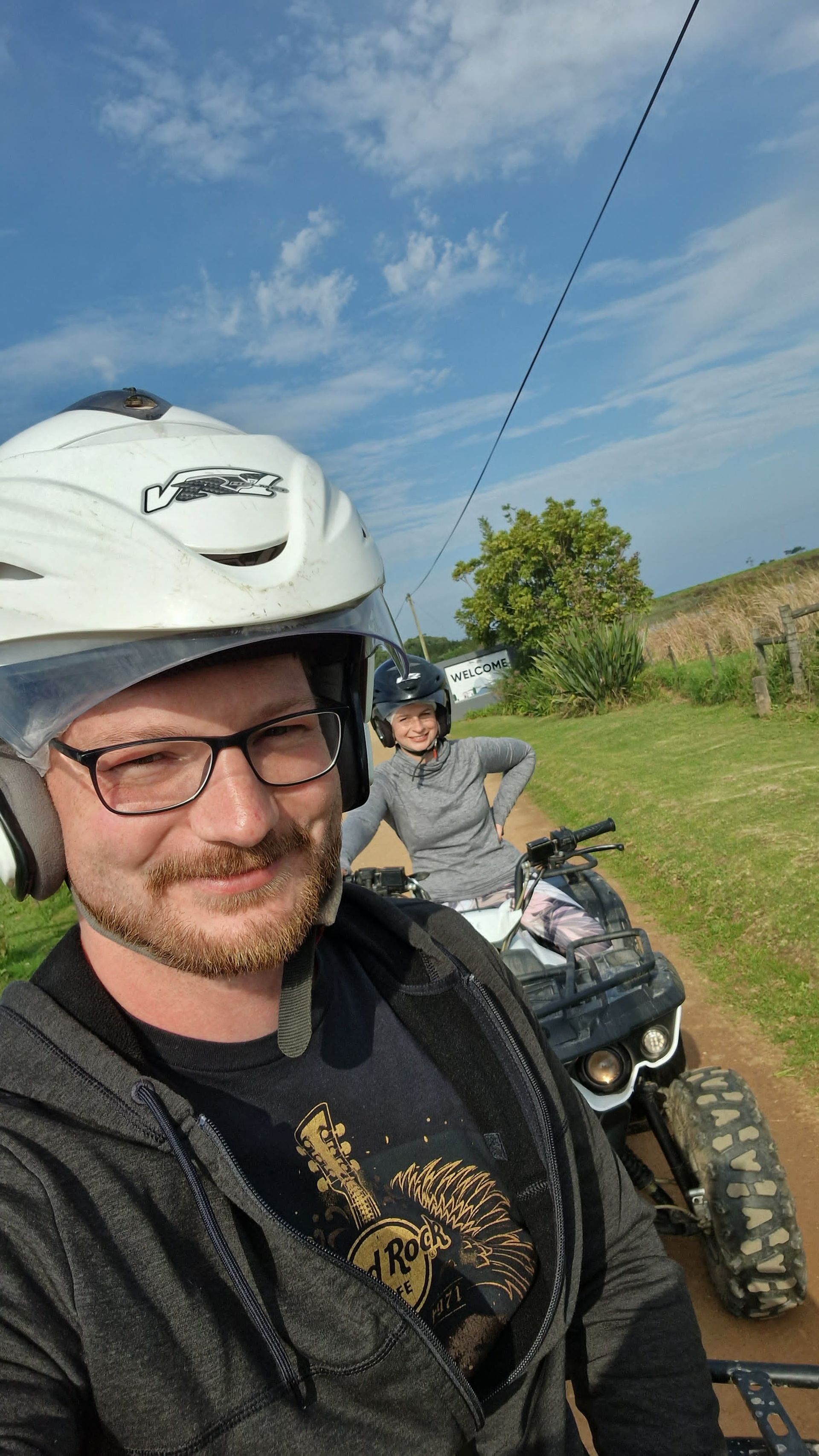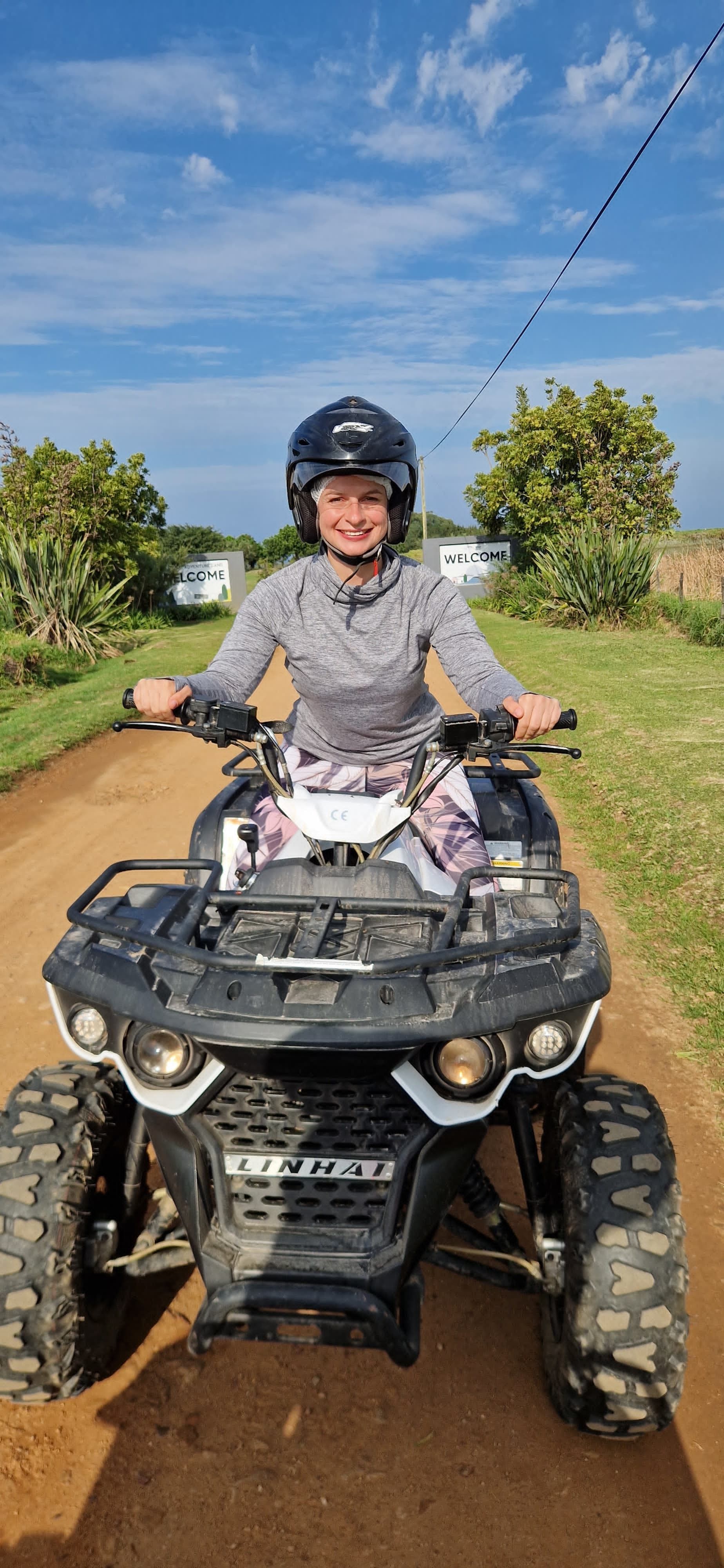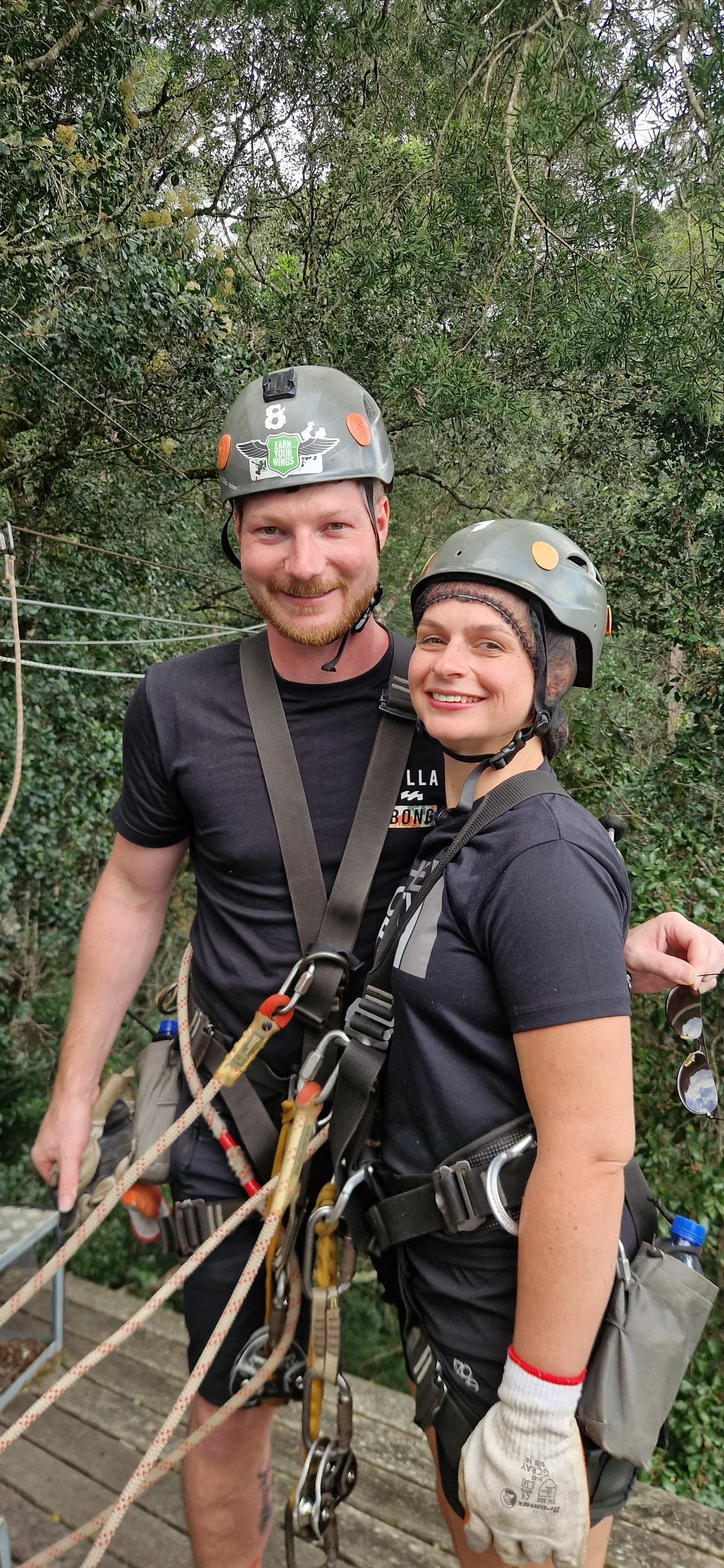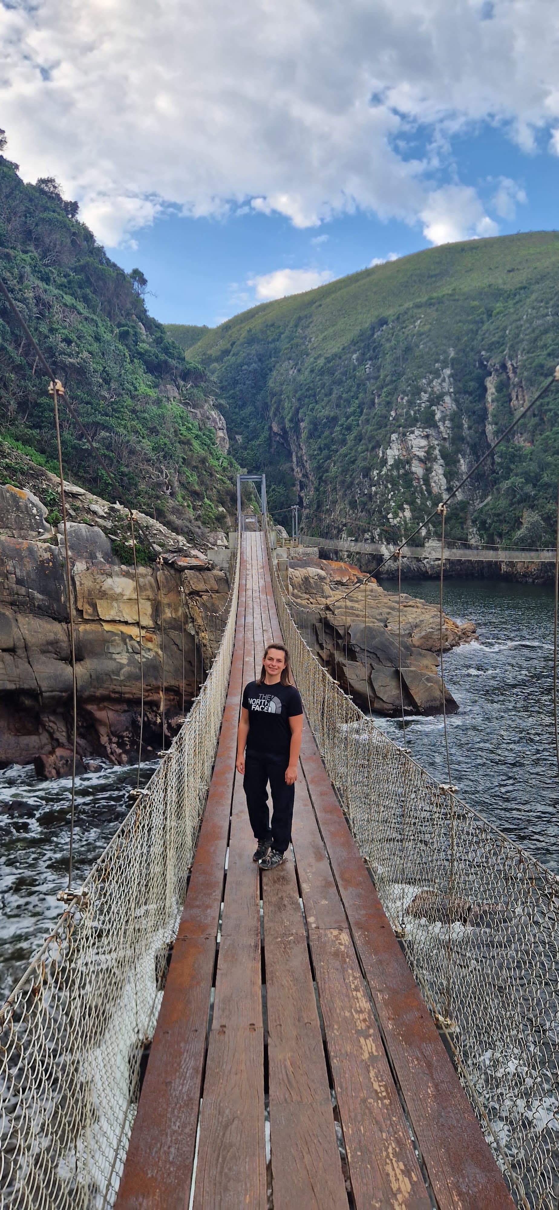 Freitag checkten wir dann aus und fuhren nach Stormsrivier in der Nähe des Tsitsikamma-Nationalparks, denn wir wollten ein bisschen Action: Voller Vorfreude buchten wir also für vorgestern eine Zipline-Tour sowie eine Quad-Tour für den heutigen Tag. Der Nationalpark ist übrigens schnuckelige 300 km² groß und in ihm befindet sich einer der letzten Urwälder von Südafrika. Dank starker Regenfälle konnte sich hier so nämlich eine üppige Vegetation entwickeln, sodass die Bäume hier zum Teil über 40 Meter groß werden. Und deshalb unternahmen wir auch eine Zipline-Tour durch die Baumkronen des Gebiets. So adrenalinreich wie wir es uns vorgestellt hatten, war es jedoch dann (leider) nicht. Durch die tollen Guides und ein lustiges Pärchen, das auch teilnahm, war es aber trotzdem ein gelungener Ausflug, der 10 Seilrutschen beinhaltete, wobei die längste knapp 90 Meter lang war und 20 Meter über dem Waldboden stattfand. Anschließend waren nicht noch nicht so sonderlich ausgepowert, dass wir noch eine (wirklich) kleine Wanderung zur Suspension Bridge im touristischeren Teil des Parks unternahmen. Dabei handelt es sich genauer gesagt um 3 Hängebrücken, die über die Mündung des Storms River gespannt sind. Nach dem etwa 1 km langen Spaziergang erblickten wir den zwischen Klippen eingezwängten Fluss, die 77 Meter lange Brücke und eine wilde Frauen-Gruppe, die gackernd über den wackelnde Pfad taumelte. Wir vermuten, dass Alkohol im Spiel war, konnten jedoch nicht genug Indizien dafür sammeln und so machten wir uns wieder auf den Rückweg. Abends schauten wir dann das Deutschlandspiel gegen Dänemark im hoteleigenen Pub, wobei wir die einzigen Gäste waren. Der Barkeeper versicherte uns jedoch, dass wir herzlich willkommen seien und so tranken wir einige Cider und stellten uns weitere Fans einfach vor. Gestern Vormittag machten wir dann unsere erste Quad-Tour unseres Lebens! Während Patty nach ihrem missglückten Rollerfahr-Versuch jedoch nicht ganz von ihren Fähigkeiten überzeugt war, war Pierre es umso mehr. Nachdem wir über eine ewig lange, hügelige Sandpiste auf dem riesigen Gelände angekommen waren, trafen wir auf das lustige Paar Hannah und Sharaz aus England, die die Tour ebenfalls machten. Sie versicherten uns lachend, dass Sharaz ein unfassbar schlechter Fahrer sei und dass wir – egal wie doof wir uns anstellen würden – immer noch eine bessere Figur als er machen würden. Und tatsächlich: So war es. Sharaz war langsam, ängstlich und fuhr teilweise aus unersichtlichen Gründen einfach ins Gestrüpp neben dem Weg. Wir wiederum kamen super mit den motorisierten Geräten klar, hatten unfassbar viel Spaß und waren dankbar, dass wir auf der Rücktour vorfahren durften. Ihr könnt euch sicher sein: Das war nicht das letzte Mal, dass ihr uns auf Quads sehen werdet! Anschließend waren wir mit den Beiden noch einen Milchshake trinken, bevor Pierre dann Formel-1 geguckt hat und Patty im Land der Träume noch ein bisschen weiter Quad gefahren ist.