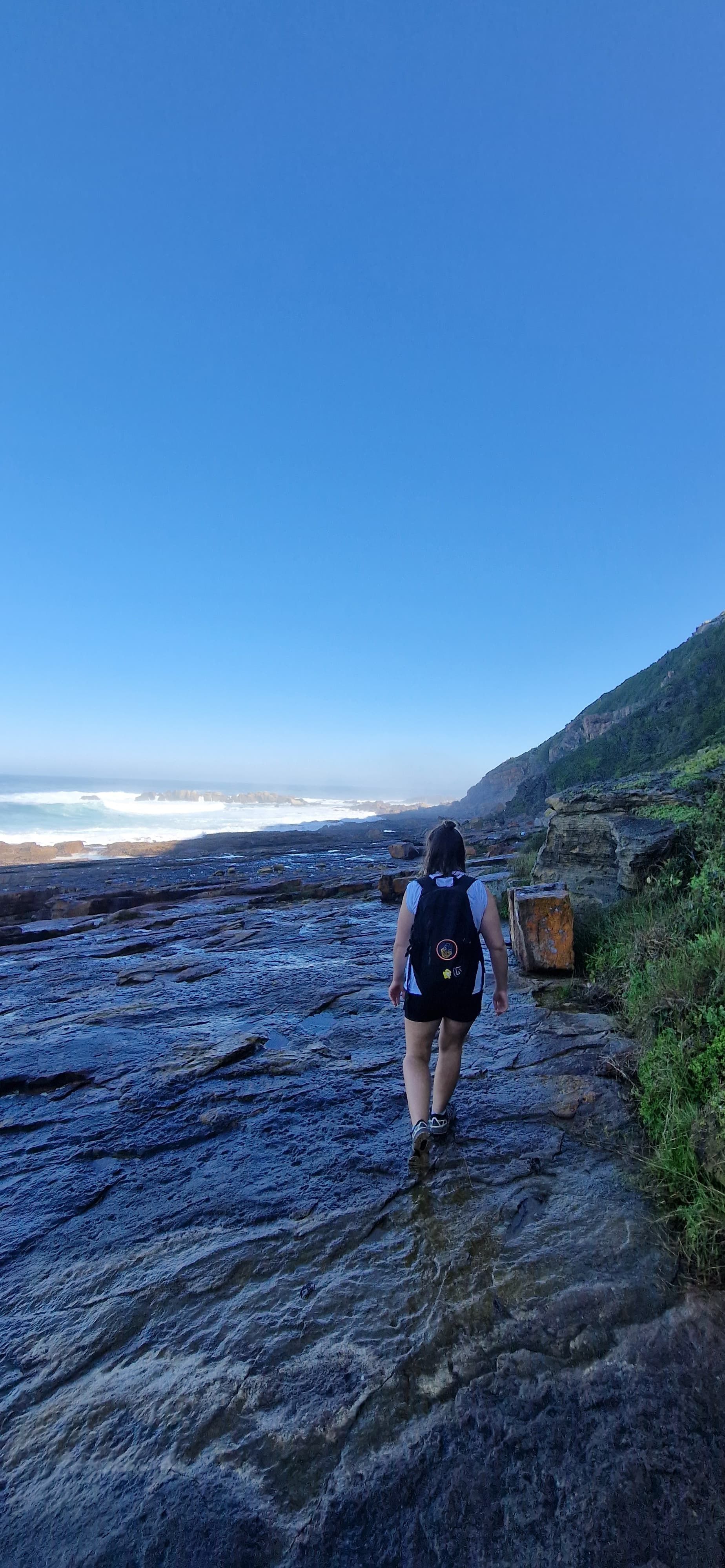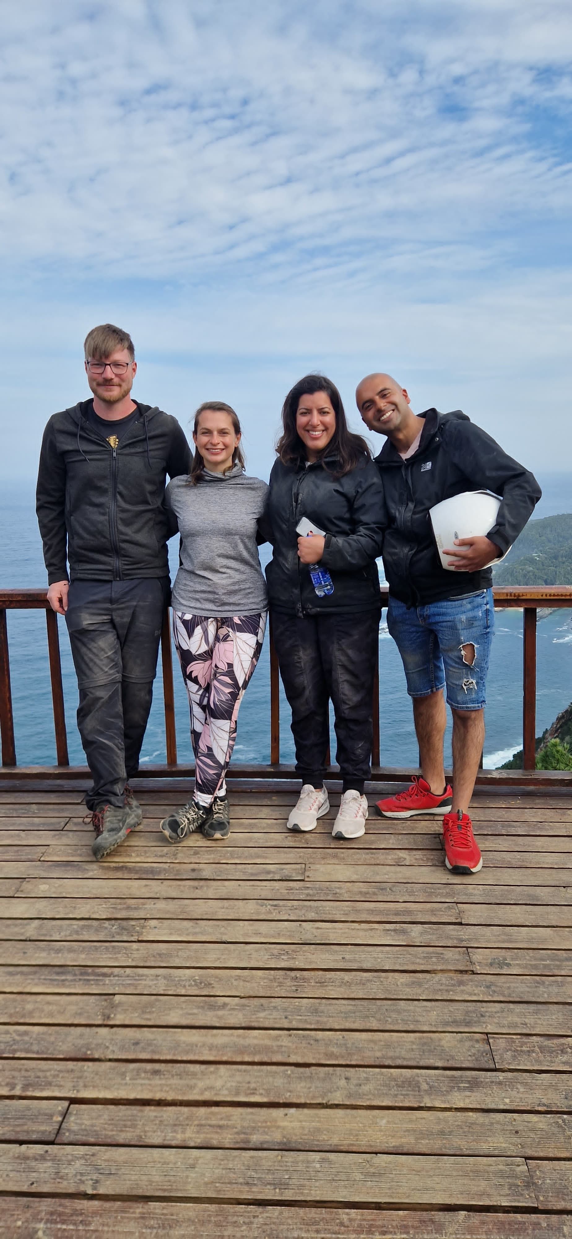 Anschließend wanderten wir in sandigem Terrain an den Robben vorbei weiter bis hin zum Zipfel der Halbinsel. Dort machten wir eine kurze Pause und sahen dabei zu wie das Meer gegen die riesigen Felsen unten uns peitschte. Und mit etwas Verspätung tauchte dann auch Pierre’s Geburtstagsgeschenk auf: Wir entdeckten 3 Wale, denen wir begeistert beim Wasserfontäne-Sprühen zusahen. Anschließend kletterten und rutschen wir die felsige Küste zurück und kraxelten steile Holztreppen rauf und wieder runter bis wir erst die Witsand Düne und letztendlich dann auch wieder den Parkplatz erreichten. Am Ende steckte uns eine wunderschöne, und auch anspruchsvolle Wanderung in den Beinen, von der wir uns zunächst bei einem Cappuccino und Americano erholten, bevor wir abends in der wunderschönen Craft Brauerei Barrington lecker essen gingen.