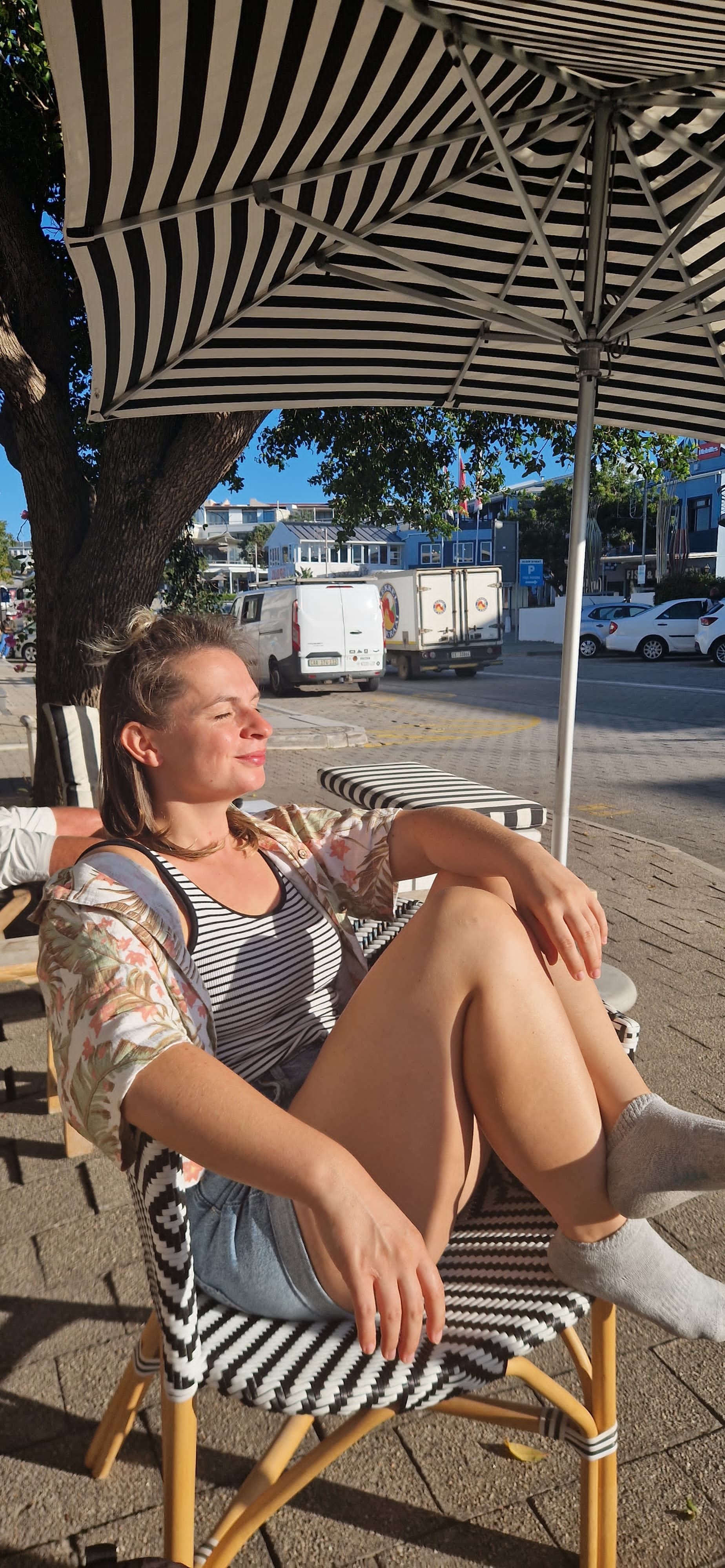 Nachdem wir am nächsten Tag mit dem voluminösen Kater Mufasa gefrühstückt hatten, fuhren wir dann endlich auf die Garden Route. Wir entschieden uns dazu, ein paar Tage in Plettenberg Bay zu verbringen, denn das Wetter sollte bombastisch werden. Auf unserer Fahrt machten wir einen Zwischenstopp im kleinen Örtchen Wilderness, in dem uns der Vibe irgendwie gut gefallen hat. Vermutlich würden wir das nächste Mal dort übernachten. Wir spazierten gemütlich am Sandstrand entlang und genossen dann einen Kaffee in der Sonne bevor wir in das süße Städtchen fuhren, das von den Südafrikanern liebevoll nur „Plett“ genannt wird. Dort besuchten wir zunächst den örtlichen Supermarkt (hier ist übrigens die Kette „Spar“ weit verbreitet) bevor wir dann in unseren süßen Bungalow einchecken konnten. Da wir abends dann keine Lust mehr auf Menschen hatten, bestand unser Abendbrot aus einer Käseplatte mit Wein, die wir auf unserer Veranda bei Kerzenlicht verspeisten. Am nächsten Morgen schliefen wir endlich mal wieder aus, wuschen Wäsche und entschieden uns dann für einen gemütlichen Spaziergang am Strand, der nur 150 Meter von unserer Unterkunft entfernt war. Und so liefen und liefen wir bei strahlendem Sonnenschein am Wasser entlang bis wir irgendwann im Ortskern für einen Kaffee ankamen.