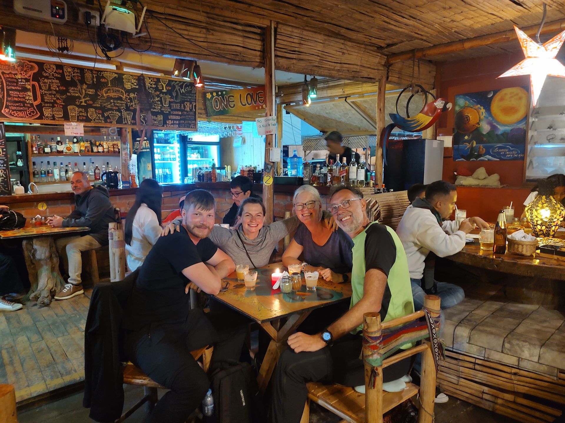 Am Abend stand dann das nächste Highlight an: ein Treffen mit Rena und Frank, einem abenteuerlustigen Ehepaar aus Hannover, das wir zu Beginn unserer Reise an einem Busbahnhof in Thailand kennengelernt hatten. Rena hatte erfreulicherweise unseren Blog gelesen und schrieb uns: „Hey, wir sind auch in Peru – wollen wir uns treffen?“ Und so haben wir die Routen so gelegt, dass wir uns eben in Paracas wiedersehen konnten. Gemeinsam ließen wir uns in einem Restaurant nieder, wo es zur Freude über die Wiedervereinigung natürlich einige Pisco Sour gab. Der Abend war gefüllt mit Lachen und Geschichten über das Leben auf Weltreise – die beiden sind nämlich aktuell ebenfalls für ein Jahr unterwegs.