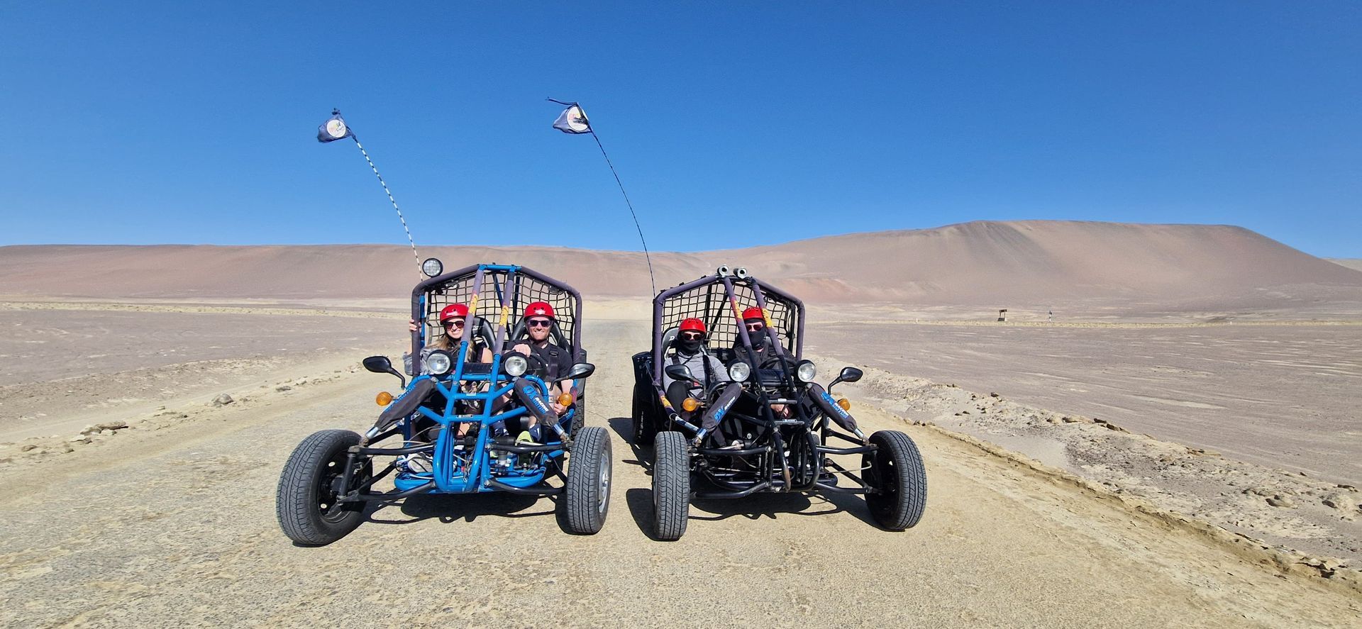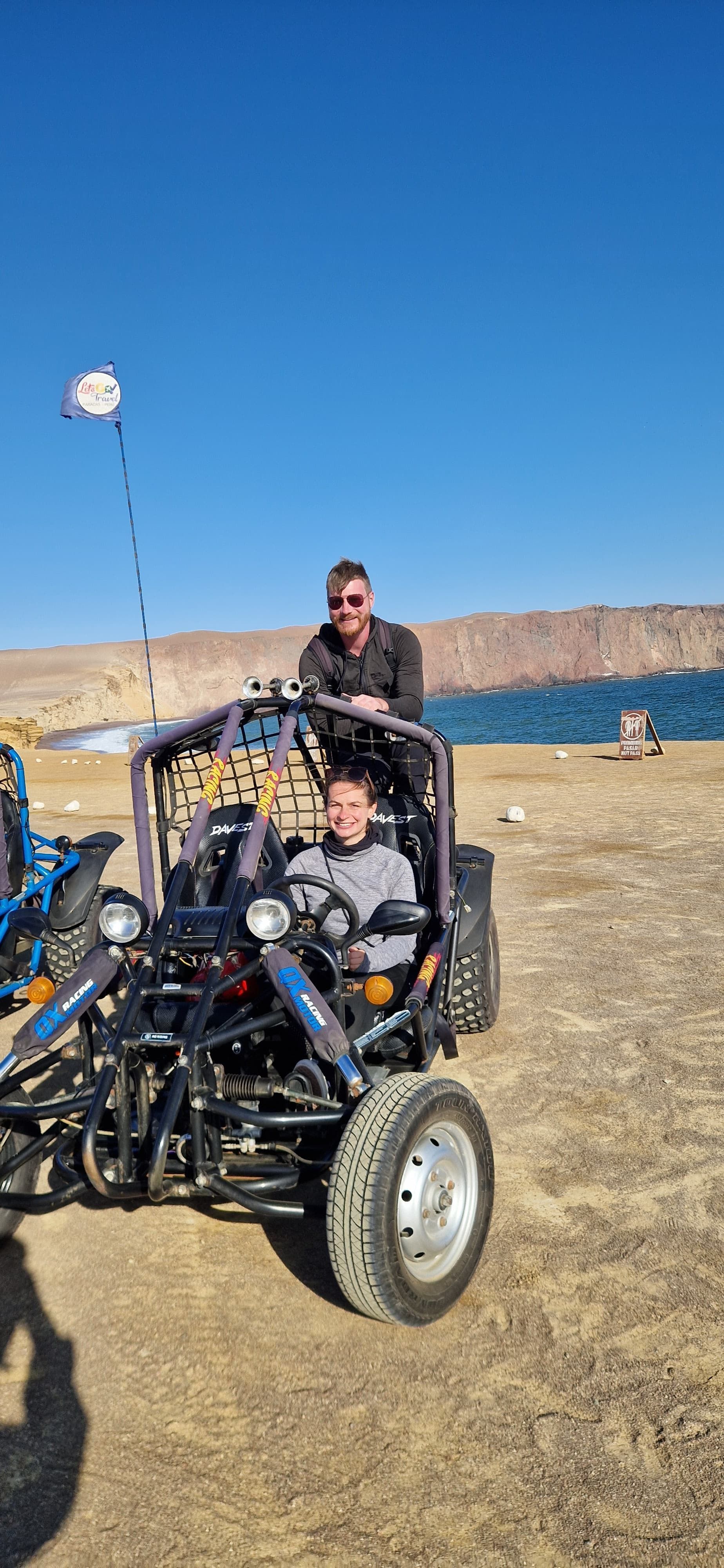 Am nächsten Tag erwartete uns eine erneute Busfahrt, die zum Glück jedoch nur eine Stunde dauerte und uns für 2 Nächte nach Paracas führte: eine kleine Hafenstadt an der peruanischen Küste. Als wir dort ankamen, freuten wir uns direkt über die Ruhe und die Meeresbrise, die uns erwarteten – nach den letzten Tagen eine wahre Erholung. Wir recherchierten ein wenig und stellten fest, dass man den dortigen Nationalpark in Form einer Buggy Tour erkunden kann, die wir dann diskussionslos buchten. In unserem motorisierten Mobil fuhren wir so über die staubigen Hügel und die surrealen, fast außerirdisch wirkenden. Landschaften des Nationalparks - vorbei an steilen Klippen, strahlend rotem Sand und dem tiefblauen Pazifik.