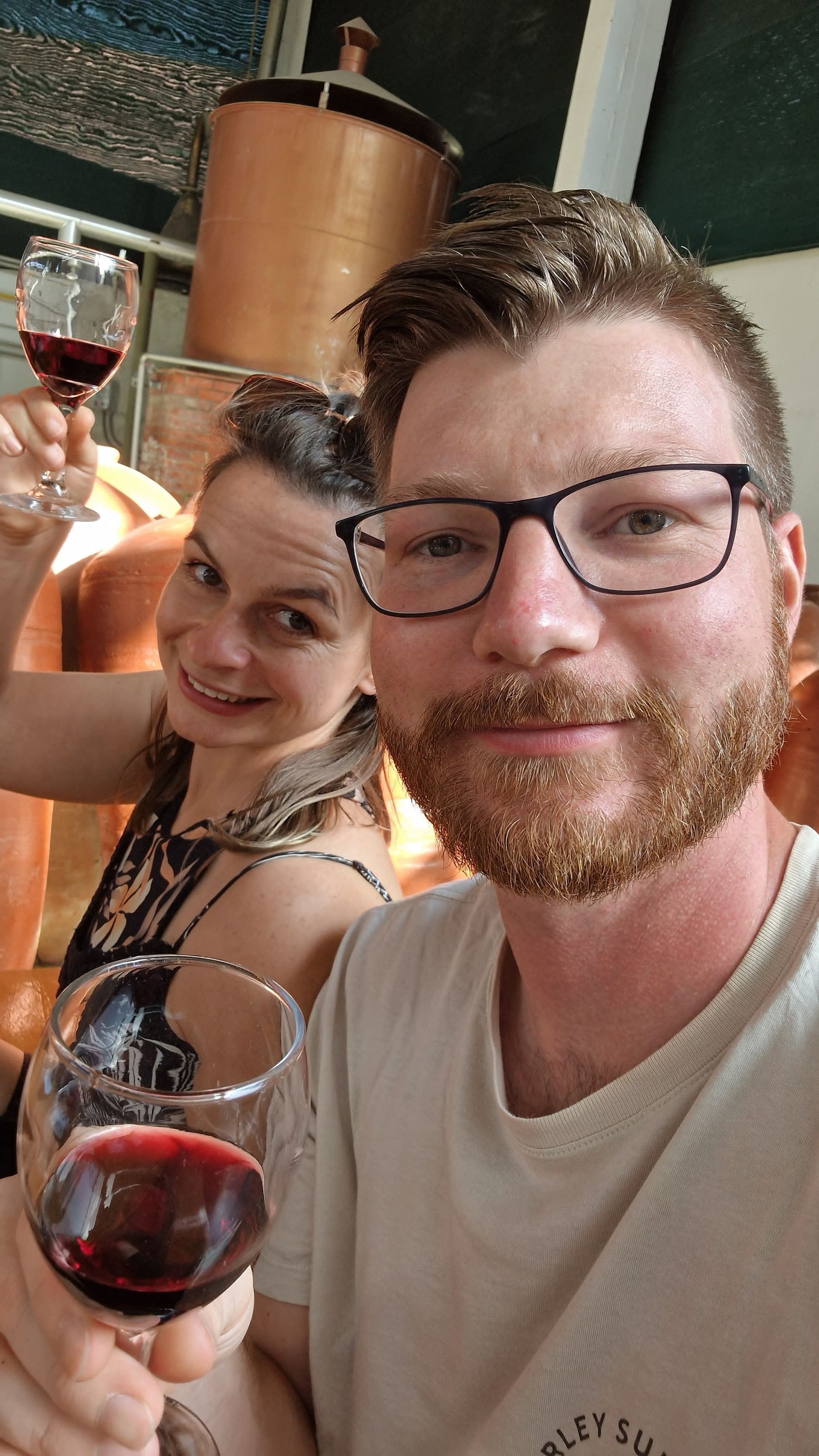 „In vino veritas“, behaupteten die alten Lateiner, was zu Deutsch so viel heißt wie „im Wein liegt die Wahrheit“. Und da wir dem nur zustimmen können und dem lauten Gewusel Icas entfliehen wollten, ließen wir uns am nächsten Morgen nach einem ausgiebigen Frühstück zum Weingut Tacama fahren. Unser Plan war recht simpel: Wein schlürfen, Sonne genießen und möglichst nicht von den lokalen Stechfliegen-Mücken-Viechern (?) als Buffet genutzt werden. Letztere hatten wir nämlich bereits am Machu Picchu kennen- und hassen gelernt: diese blöden Hölleninsekten sind ungefähr so groß wie Fruchtfliegen, beißen aber wie Bremsen und hinterlassen – wenn man so wie Pierres Haut ein wenig empfindlich ist – auffällig rote Bissspuren. So schmierten wir uns großzügig mit Anti-Insekten-Zeug ein und stellten erfreut fest, dass wir noch knapp 90 Minuten Zeit hatten, bis eine englischsprachige Verkostungs-Tour beginnen würde. So setzten wir uns in das dortige Restaurant, bestellten zwei Gläser Wein und mussten wohl oder übel an unsere Weintram-Tour in Südafrika zurückdenken. Ganz so eskalieren lassen wollten wir es an dem Tag jedoch nicht und so brachen wir nach dem Getränk zu unserer gut gemachten und informativen Tour auf. Das Weingut selbst war eine Augenweide – gepflegte Gärten, riesige Weinreben und ein Hauch kolonialer Eleganz. Wir verkosteten zum Abschluss noch ein paar weitere Weine, ein viel zu großes Glas Pisco und kauften uns eine Flasche des wohl süßesten Weins, den wir je getrunken haben. Lecker, lecker, mjam mjam mjam.
