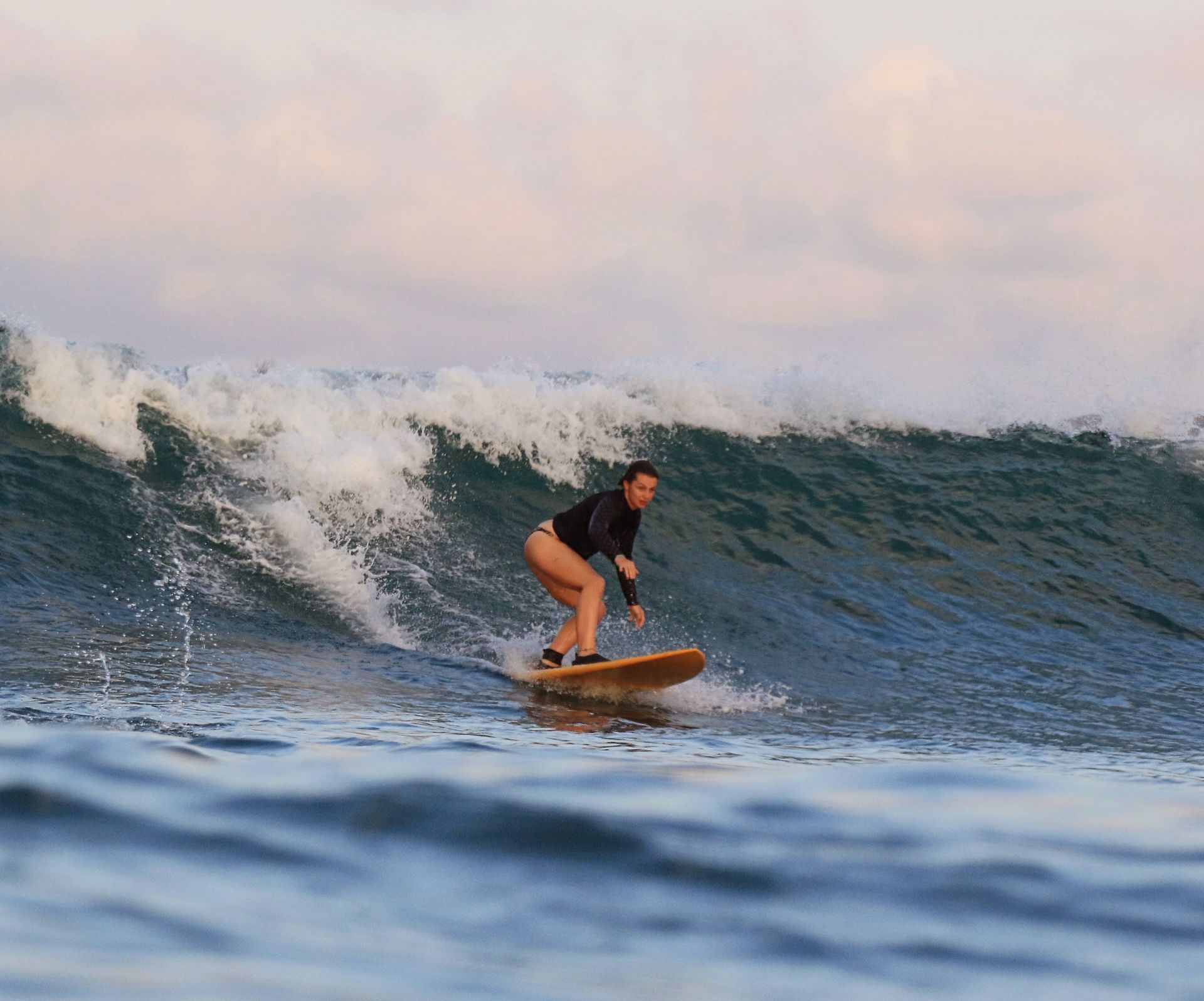 Gute Lehrer:innen sind rar. Das war schon in der Schule so und bewahrheitet sich nun auch im Wasser. Die Coaches mögen zwar gut auf den Brettern sein, was sie aber noch lange nicht zu guten Erklärern oder Motivatoren macht. Die schwierigste Sorte sind die, die wie wild mit allem flirten, was nicht bei 3 auf dem Surfbrett ist, wodurch es dann an Sicherheit, Fokus und Spaß mangelt. Auch "toll" sind die Momente, in denen sich andere Schüler:innen schwer tun und man selbst die Launen der Coaches abbekommt. In der ersten Woche besuchte Patty zunächst die Surfschule Ombak, die leider (bis auf eine Ausnahme) eine Mischung aus allen oben beschriebenen Coaches geboten hat. Etwas frustriert hat Patty dann auf Besserung gehofft, aber dann schlussendlich einen neuen Versuch bei Chili's Surfschule gestartet. Die Aktion ging jedoch eher nach hinten los, da der dortige Coach dem zweiten Surfschüler ständig davon berichtete, wie oft er seine schwangere Freundin betrügen würde. Weder die feine englische Art noch Dinge, die Patty vor, während und nach dem Surfen interessieren. Etwas mehr frustriert hat sich Patty dann Motivation von ihrer besten Freundin Marie einholen müssen, um einen 3. Versuch zu starten. Und zum Glück (!) hat sie dann über eine Empfehlung Jovan getroffen, der sich als wahrer Glücksgriff herausstellen sollte: Zuverlässig, witzig, entspannt sowie ein Profi, Motivator und Erklärbär im Wasser - eine perfekte Mischung. Mit ihm hat sich Patty dann in der zweiten Woche jeden Morgen in die Wellen gestürzt und auch sichtliche Fortschritte gemacht - yeaa.