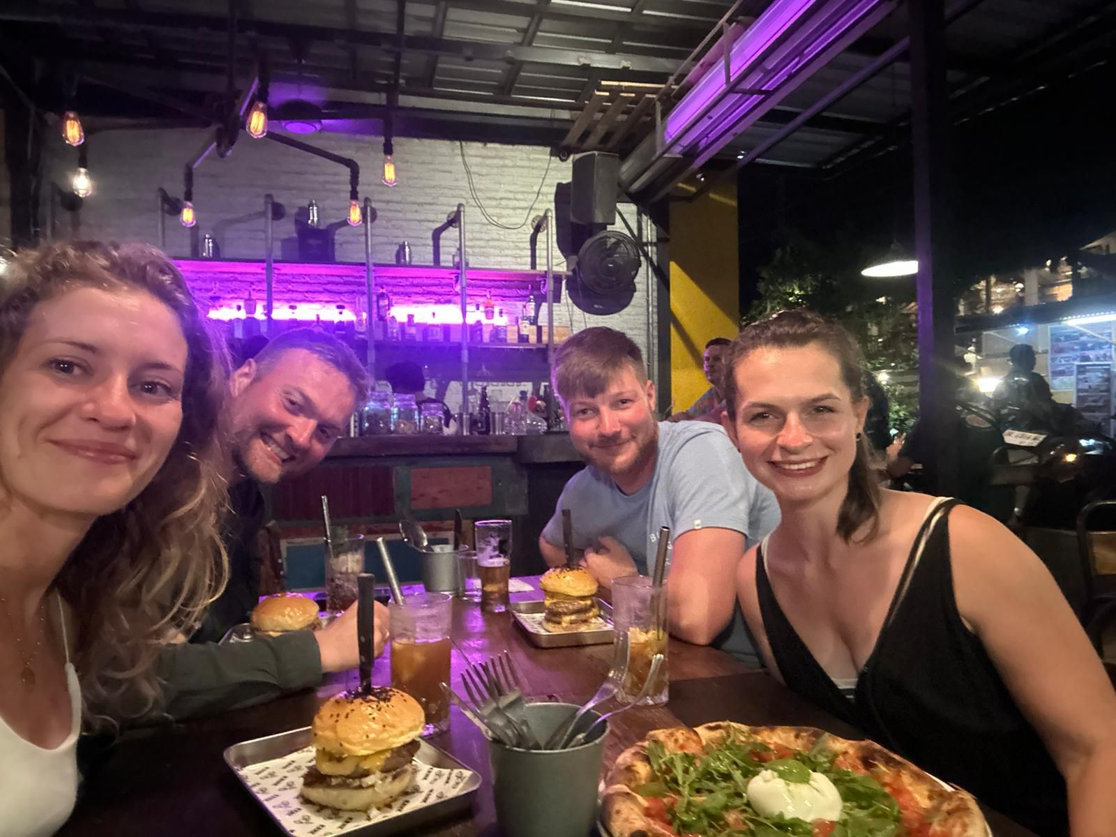 Ach, und einer der extrem positiven Nebeneffekte beim Surfen ist, dass man oftmals auf Gleichgesinnte trifft. Patty hat so jeweils an unterschiedlichen Tagen die Bekanntschaft mit Kinga, Micha, Evelyn, Alex, Julia und Jeroen gemacht. Mit Evelyn hat sich Patty dann mehrfach zum Yoga und zu einer Kakao-Zeremonie getroffen. Was zum Teufel das ist? Die Auflösung folgt unten! Mit dem super lustigen Paar Alex und Julia haben wir zudem unsere letzten Abende bei Abendessen und Bier verbracht, um das Surfen mental vor- und nachzubereiten. All diese Begegnungen haben wieder gezeigt, wie schön das Reisen sein kann, wenn man auf Menschen trifft, mit denen man auf einer Wellenlänge (hehe) ist.