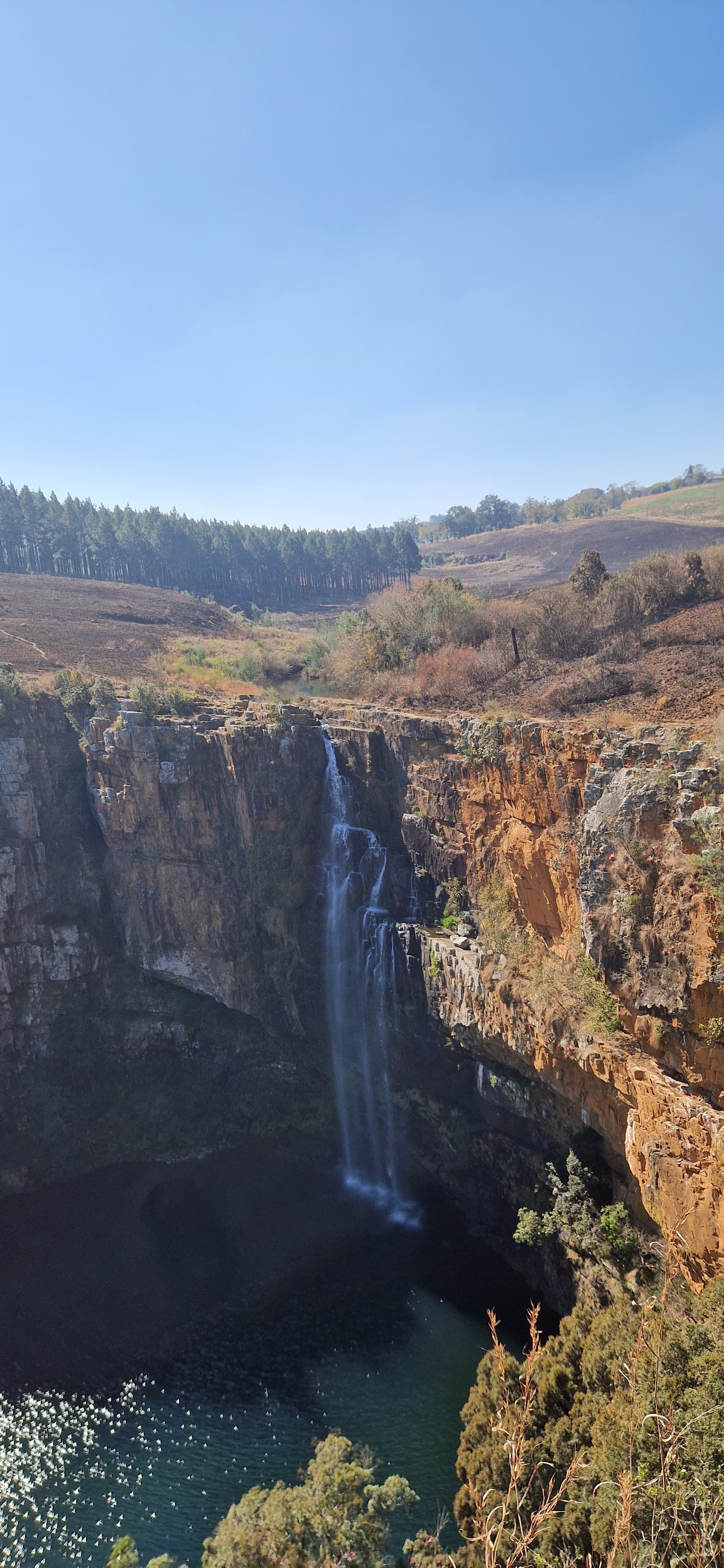 Und ihr könnt es vermutlich kaum glauben, aber unser Besuch der Panorama Route konnte dann nun endlich stattfinden! Wir begannen unseren Trip bei den Berlin Falls, einem Wasserfall, bei dem das Wasser rund 80 Meter in die Tiefe und in einen smaragdgrünen natürlichen Pool stürzt. Der Anblick war zwar ganz cool, aber da wir Wasserfällen nun nicht allzu viel abgewinnen können, ließen wir banausig die Lisbon Falls sowie die Mac Mac Falls aus. Die Berliner Wasserfälle sowie die Lissabon Wasserfälle verdanken ihren Namen im Übrigen europäischen Bergleuten, die die plätschernden Gewässer nach ihren Heimatstädten benannten. Anschließend besuchten wir „The Pinnacle“, einen Felsvorsprung, der aus einer tief bewaldeten Schlucht einsam herausragt. Dann besuchten wir Gott und sein Fenster – zumindest, wenn man dem Namen glaubt. Beim „God’s Window“ handelt es sich für uns nämlich „nur“ um einen Aussichtspunkt mit Sicht über das Lowveld bis zum Kruger Nationalpark, der unserer Meinung nach nur mit übertriebener Phantasie an ein Fenster erinnert. Dort spazierten wir dann noch durch einen (wirklich kleinen) Regenwald hinauf zu einem weiteren Ausguck, wobei es hier wieder recht diesig war und wir die sensationelle Aussicht nur erahnen konnten. Dann fuhren wir weiter zu den Bourke’s Luck Potholes – namentlich also zu Schlaglöchern, die einem gewissen Herrn Bourke Glück brachten. Es handelt sich dabei um eine echt coole Gesteinsformation, die an der Mündung zweier Flüsse liegt und für uns eines der Highlights der Route war: Die Strömungen dieser Flüsse, die Sand und Kieselsteine transportieren, haben tiefe, zylindrische Löcher mit komplizierten Mustern und Farben in den roten Sandstein des Canyons gegraben. Wer nun dieser Bourke ist und was er damit zu tun hat? Der gute Tom war Goldsucher und hat an diesem Ort eine geringe Menge Gold gefunden. Wir hüpften also auch fröhlich über die Felsformation und hielten unsere Hände in das kalte, klare Wasser. Wir fanden zwar leider kein Gold, aber ein paar lustig aussehende Eidechsen, die dann für ein Fotoshooting herhalten mussten. Der Abschluss unseres Ausflugs war auch gleichzeitig unser persönlicher Lieblingsort der Panorama Route: Die „Three Rondavels“ am „Blyde River Canyon“, welcher nach dem Grand Canyon in den USA und dem Fish River Canyon in Namibia der drittgrößte Canyon der Welt ist. Oft wird er auch als der grünste Canyon der Welt bezeichnet. Als Teil der mächtigen Drakensberge bietet er über 50 Kilometer (!) beeindruckende Landschaften und unvergessliche Ausblicke. Die „Three Rondavels“ sind drei markanten Felsen, die mit ein wenig Phantasie aussehen, wie die traditionell afrikanischen Rundhütten. Inmitten dieser unfassbar schönen Kulisse haben wir uns richtig winzig gefühlt – wirklich spektakulär. Und während es hier wohl laut Internet richtig voll werden kann, hatten wir die Aussichtsplattform erfreulicherweise ganz für uns allein. Anschließend düsten wir wieder nach Hause und mussten an „unserem“ Stopp-Schild erneut schmunzeln. Im Endeffekt können wir sagen, dass wir die Fahrt genossen haben, wobei manche Orte doch weniger spektakulär sind, als man anhand der Beschreibungen im Internet oder der Fotos vermuten könnte.
