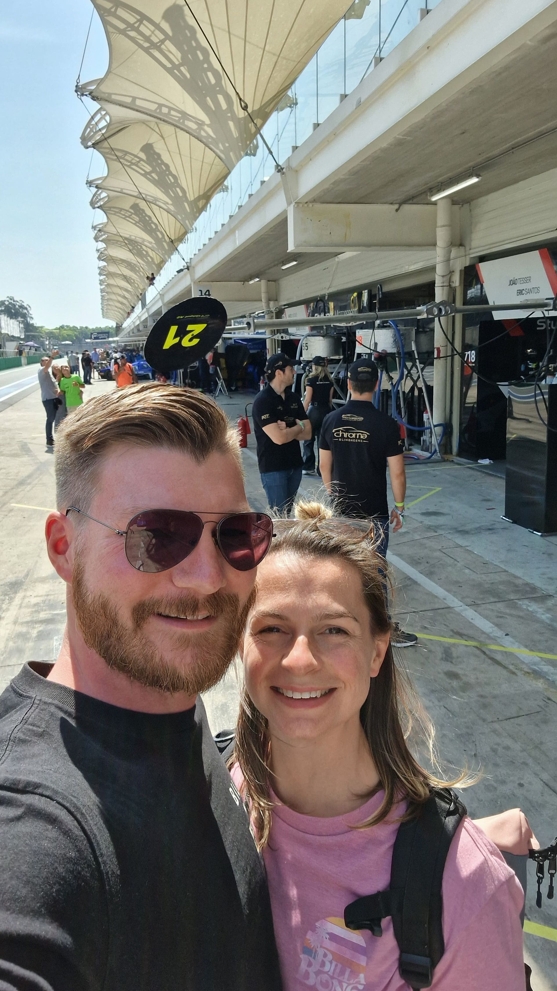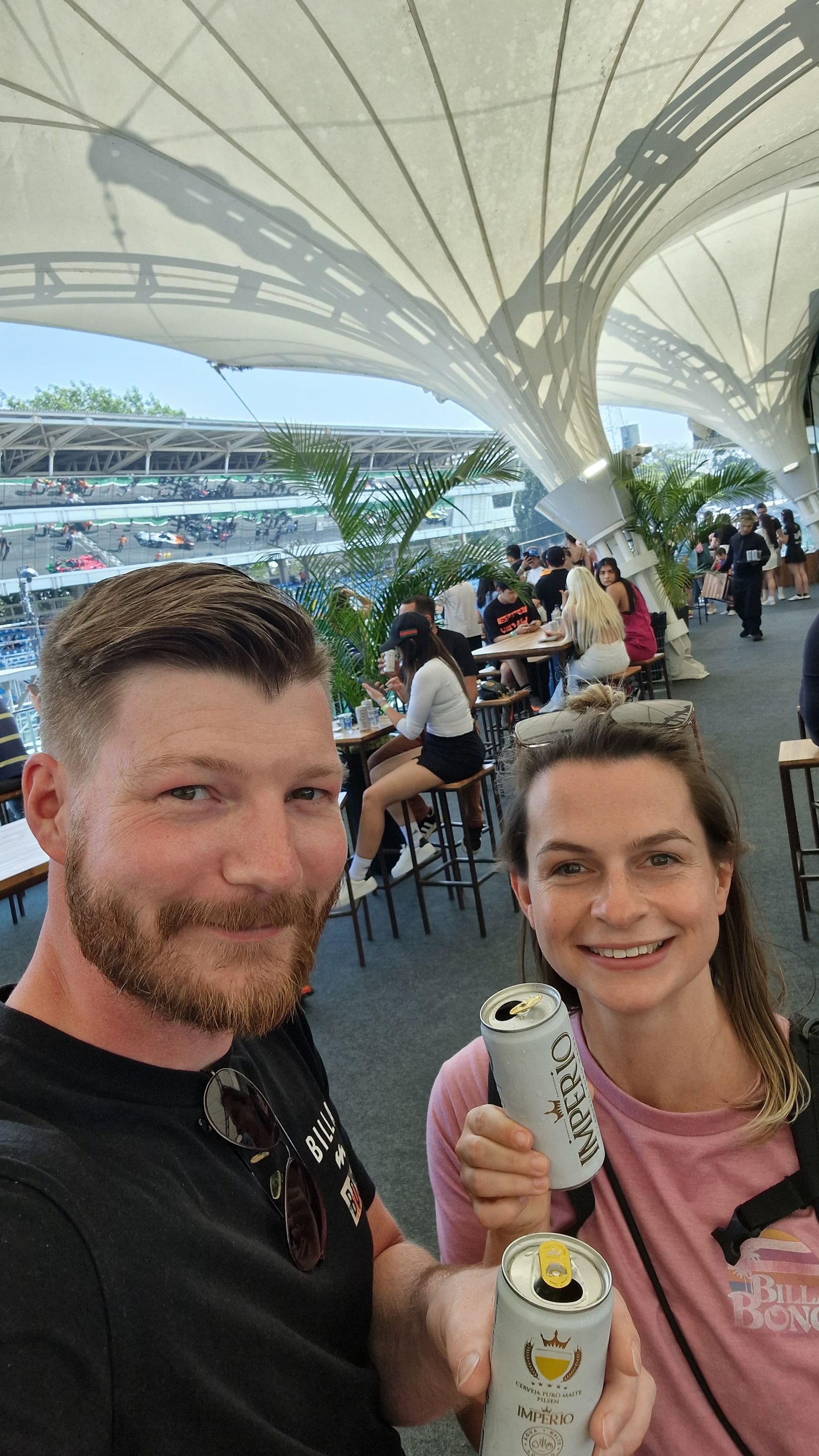 Interlagos, offiziell bekannt als Autódromo José Carlos Pace, ist eine – zumindest unter Kennern - berühmte Rennstrecke, die seit den 1970er Jahren regelmäßig den Großen Preis von Brasilien in der Formel 1 ausrichtet. Die Strecke ist für ihre anspruchsvollen Kurven und Höhenunterschiede bekannt und gilt als eine der herausforderndsten im F1-Kalender. Wen wundert es da, dass der besondere Kurs Interlagos zu einer der Lieblingsrennstrecken von Pierre macht. Und so saß er auf unserem Bett und wünschte sich mit einem süßen Dackelblick einen Besuch der Rennstrecke. Und so setzten wir uns also eines Vormittags in ein Uber und fuhren knapp 45 Minuten zum Haupttor des Autódromo. Wir fanden uns wieder in einer recht lauten und nicht ganz so einladenden Ecke der Stadt und standen vor dem noch weniger freundlich aussehenden Tor, das von grummelig aussehenden Wachmännern versperrt wurde. Wir spazierten also zu einigen anderen Toren, bei denen es jedoch nicht viel besser aussah. Als wir dann an einer absolut nicht vertrauenswürdig aussehende Straße ankamen, entschlossen wir uns nach ein paar Metern etwas verzweifelt zum Umdrehen. Einige süße, hilfsbereite Anwohner versuchten uns daraufhin mit Händen und Füßen zu helfen und schickten uns im Endeffekt wieder zu dem Tor, an dem wir eingangs gestartet waren. Die dortigen Sicherheitskräfte wiesen uns jedoch leider ab, da die Strecke mittlerweile wegen der Vorbereitungen auf den F1 Grand Prix im November gesperrt ist. Etwas geknickt liefen wir noch ein paar weitere Tore in die andere Richtung ab, gaben jedoch dann final auf. Da es das jedoch noch nicht gewesen sein konnte, recherchierten wir im Nachgang nochmal und fanden heraus, dass drei Tage später ein 4-Stunden-Rennen der brasilianischen Liga stattfinden sollte. Zwar nicht Formel 1, aaaber es gab noch Tickets und Hauptsponsor war Imperio, eine landeseigene Biermarke - was sollte also schief gehen? 😁 Wir fackelten also nicht lang und kauften uns - natürlich ganz stolz mit unserer CPF - unsere Tickets. Aber nicht nur irgendwelche Tickets, sondern VIP-Tickets mit Zugang zum Fahrerlager, der Boxengasse, Freibier und Buffet. Die Dinger würden bei einem Formel 1 Rennen so zwischen 2.000 und 4.000 Euro kosten, in der brasilianischen Würstchen-Liga haben wir schmale 45 Euro gezahlt. Und so kamen wir dann bei unserem zweiten Anlauf tatsächlich durch das vormals geschlossene Tor und hatten einen wunderbar sonnigen, bierreichen Aufenthalt als VIPs.