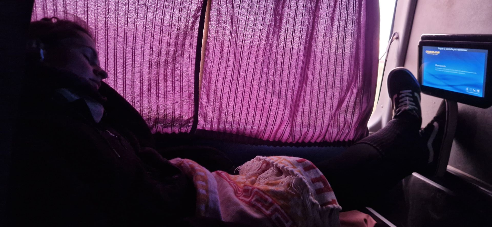Busfahren in Peru klingt erstmal nach einem wilden Abenteuer oder? Und tatsächlich: die Fahrten sind schon fast ein eigenes Erlebnis – denn sie sind deutlich komfortabler, als man es vielleicht erwarten würde. Zuerst geht's los mit dem Check-in am Busbahnhof, der eher an einen kleinen Flughafen erinnert: man gibt sein Gepäck auf, bekommt einen personalisierten Papierschnipsel dafür, wartet in einer Lounge und muss vor der Einsteigen durch eine Sicherheitskontrolle. Pünktlich auf die Minute rollt der doppelstöckige, super saubere Bus dann ein und punktet mit richtig viel Beinfreiheit. Die Sitze sind riesig, lassen sich fast komplett flach machen und sind bequem wie Liegesessel. Außerdem gibt es Toiletten, Getränkehalter, einen Fernseher und USB-Anschlüsse zum Smartphone-Aufladen. Es gibt sogar eine Trennwand zwischen den Sitzreihen, sodass man sich wie in seinem eigenen kleinen Raum fühlt. Zwischenstopps gibt es jedoch keine – die Fahrer prügeln die gesamte Strecke auf einmal durch. Am Ziel angekommen, holt man sein Gepäck wieder mit seinem halb zerknüllten Papier-Nupsi am Schalter ab und so kann man günstig und bequem das Land bereisen. Wie auf Beweisbild A zu sehen, sind die Busse übrigens meistens komplett abgedunkelt, sodass auch tagsüber das ein oder andere Nickerchen nicht ausbleibt.