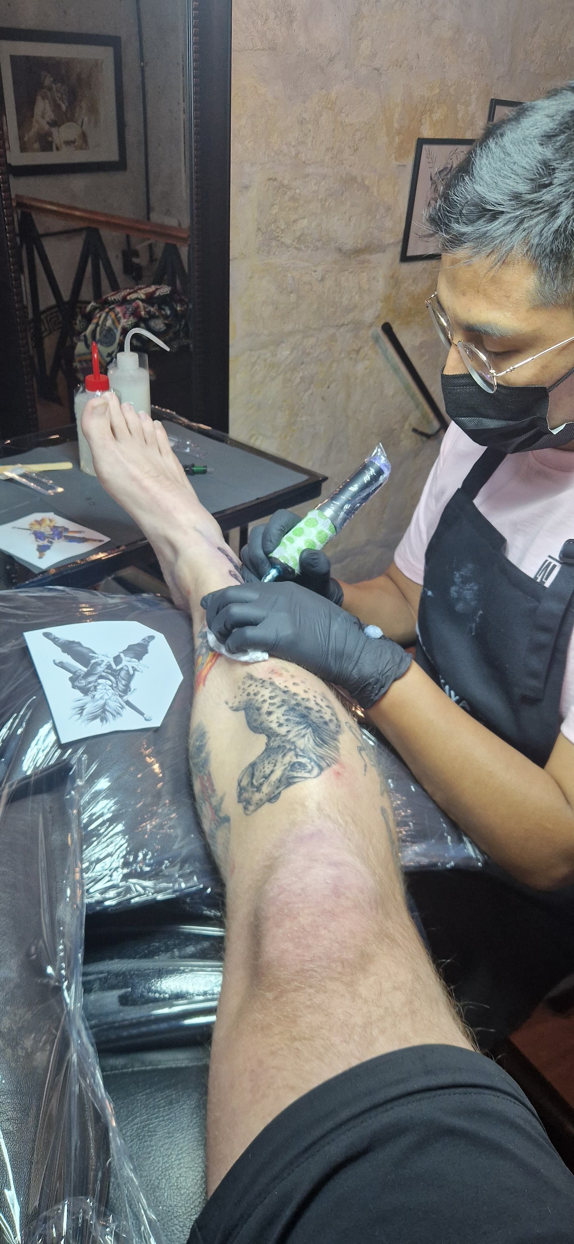 Am vorletzten Abend hüpfte Pierre dann noch in ein nahegelegenes Tattoo-Studio und ließ sich sein mittlerweile 9. Bildchen auf’s Bein zaubern. Die dortigen Tätowierer:innen waren ganz nach seinem Geschmack und so reiht sich sein Besuch dort unter die Top 3 seiner Tintenkleckse-unter-die-Haut-jagen-Sessions. Patty traf sich währenddessen noch mit dem geselligen Vince aus Berlin auf einen Kaffee, den wir ebenfalls auf der Tour kennengelernt hatten. Am letzten Tag schleppten wir dann zunächst die Koffer unserer Nachbarn in den kleinen Kiosk neben unserer Wohnung und anschließend unsere Rucksäcke – die beiden Süßen waren nämlich zu einer Wanderung in den Colca-Canyon aufgebrochen und wir haben ihnen nach (sehr kurzer) Kennenlernphase gern einen Freundschaftsdienst erwiesen und uns um ihr Gepäck gekümmert. Warum auch wir unsere Rucksäcke dort abgestellt haben? Ganz einfach: unser Bus sollte erst um 21 Uhr abfahren und wir wollten nicht den ganzen Tag mit unserem Zeug durch die Gegend laufen. Und wie heißt es so schön? Man erntet, was man säht! Nach ihrer Wanderung haben uns die Beiden zum Abendessen eingeladen, was dann auch den super lustigen Abschluss unserer Zeit in Arequipa bildete. Anschließend mussten wir nämlich in ein Uber hüpfen und zum Busbahnhof fahren, wo unser Nachtbus auf uns wartete, um uns zu unserer nächsten Station zu fahren.