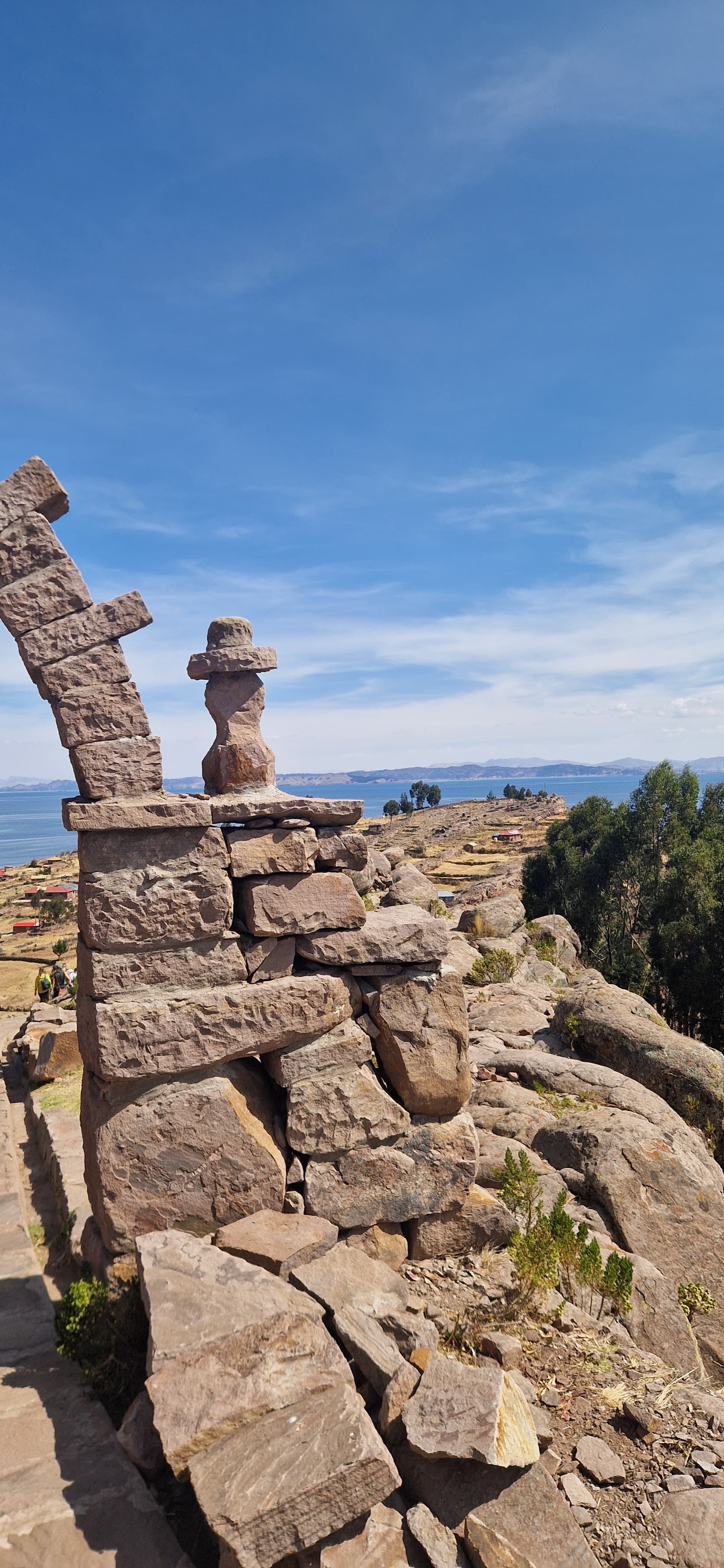 Und nach 9 ½ Monaten auf Reisen war es dann am nächsten Morgen so weit: Patty wachte mit Hals- und Gliederschmerzen auf. Kaum zu fassen, aber sie war zum ersten Mal krank! Die Mischung aus Höhe und Gas war wohl auch für ihren Körper zu viel des Guten – haha. Und so machte sich Pierre dann hochmotiviert allein zu der von der Gastgeberin empfohlenen Exkursion auf. Als er von dem kleinen Boot abgeholt wurde, hatte Patty natürlich ein wenig Bedenken, etwas Cooles verpassen zu können, aber ihr Körper brauchte einfach ein bisschen Ruhe. Und so fuhr Pierre winkend von dannen. Nach relativ kurzer Zeit musste er dann auch schon in ein größeres, stärker motorisiertes Boot umsteigen. Der Umstieg erfolgte natürlich auch auf einer Insel, die jedoch recht touristisch daher kam, denn er wurde bereits von sorgfältig aufgebauten Souvenirs und singenden Damen begrüßt. Höflich ließen er und die anderen Mitreisenden das Spektakel über sich ergehen. Anschließend wurde er mit vielen anderen Touristen auf das zweite Boot gepfercht, welches dann ewig lang über’s Wasser plätscherte. Leider blieben auf der Zielinsel die Infos über die dortigen Inka-Ruinen, die Bedeutung des See sowie die Uros spärlich. Und so groß und bedeutend der Titicaca-See auch ist – hier, wo sich Legenden mit der Realität mischen und die Inka-Mythen um den See ranken - wollte der Funke einfach nicht überspringen. Zum Glück für Patty und zum Pech von Pierre stellte sich sein Ausflug also eher als enttäuschend heraus: eine sehr touristische Tour, auf der mehr Boot gefahren wurde als alles andere. Das Positive? Patty hatte absolut nichts verpasst.