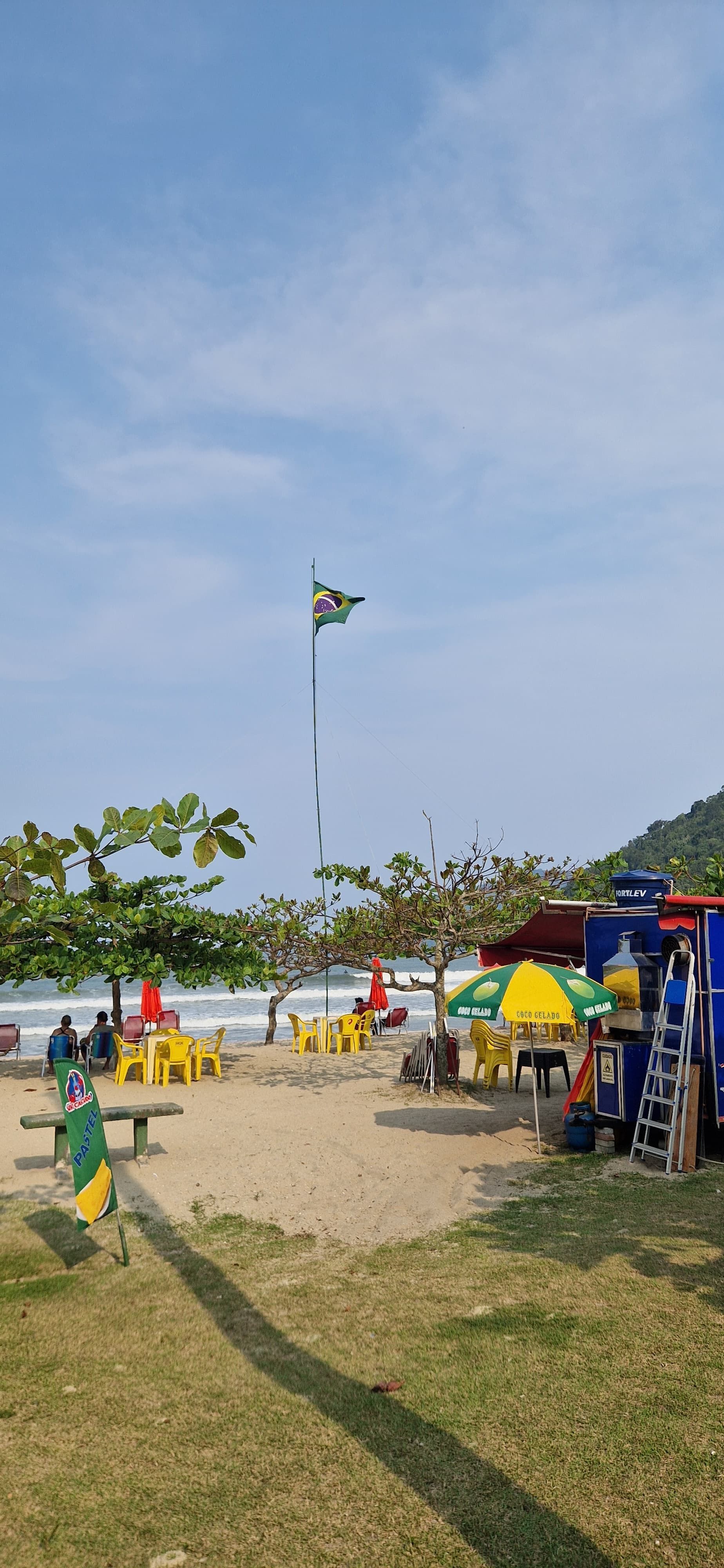 Ubatuba – klingt wie der Refrain eines verrückten Songs oder als hätte jemand die Worte "Urlaub" und "Tuba" in einer Mixer geworfen. Tatsächlich ist es der Name eines fantastischen Surferortes an der brasilianischen Küste, der im Staat São Paulo liegt und mehr als 100 (!) Strände hat. Angeber, hm? Vor allem der Praia Itamambuca gilt dabei als Surf-Mekka und ist regelmäßig Austragungsort für internationale Surf-Wettbewerbe. Aber sind wir ehrlich: nach insgesamt 4 Wochen auf dem Brett sind wir noch lange keine Profis und so haben wir uns demütig einen Strand gesucht, an dem auch für uns die Wellen machbar waren 🏄♂️ Und so landeten wir am Praia do Perequê-Açu, der nur wenige Kilometer nördlich des Zentrums von Ubatuba liegt, in dem wir untergekommen waren. Der Strand ist etwa 3 Kilometer lang, hat einen breiten Sandstreifen und bietet eine tolle Aussicht auf die umliegenden Berge und Inseln der Region.