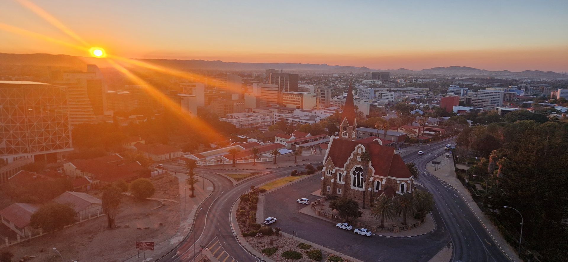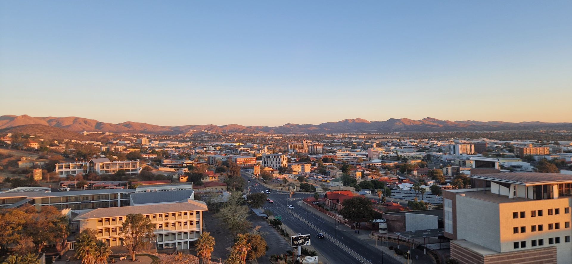 Nachdem wir am Flughafen unserer Routine gefolgt waren und sowohl Bargeld als auch SIM-Karten besorgt hatten, wollten wir per LEFA (der Mobilitäts-App Namibias) eine Fahrt in die Stadt buchen. Zu unserem Erstaunen war jedoch niemand verfügbar und so mussten wir wohl oder übel bei dem nächsten Menschen, der „Taxi?“ sagt, einsteigen. Immerhin wussten wir durch die App, was eine Fahrt ungefähr kosten sollte, sodass wir uns nicht haben abzocken lassen – was der freundliche Fahrer natürlich anfangs versucht hat. Ein weiterer Vorteil an diesen Apps ist einfach, dass die Fahrenden nach der Fahrt bewertet werden und sie sich entsprechend Mühe geben (müssen). Unser Kerl hingegen mutierte ziemlich schnell zum Rennfahrer, was sich auf der holprigen und recht engen Landstraße irgendwie nicht richtig anfühlte. Zudem brüllte er lautstark auf einer uns unbekannten Sprache in sein Telefon, das gefühlt alle 5 Minuten klingelte. Aber da wir schon Kuba ohne Anschnallgurte und Sri Lanka in Tuktuks überlebt haben, waren wir uns auch hier sicher, dass da gaaar nichts passieren kann. Stimmte auch, denn nach einer knappen halben Stunde kamen wir dann an. Wir waren recht froh, dass wir nicht in der letzten, dunklen Ecke aussteigen mussten, sondern auf dem hell beleuchteten Freedom Plaza, auf dem auch das Hilton sowie der Oberste Gerichtshof zu finden sind.